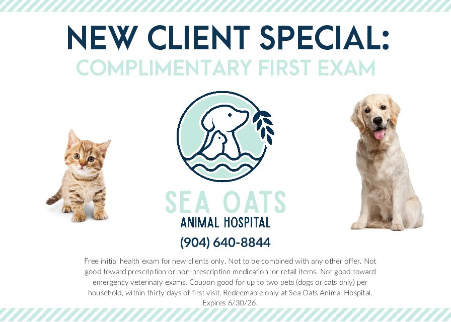 All of us at Sea Oats Animal Hospital want to thank you and your pets for being a loyal member of our community and welcome you to our practice. We are grateful that you have chosen us as your pet’s health care provider.